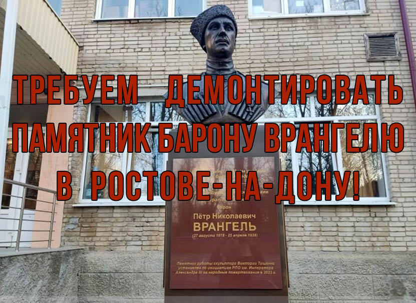 Мы, коммунисты и комсомольцы города Ростова-на-Дону требуем демонтировать памятник барону Врангелю!