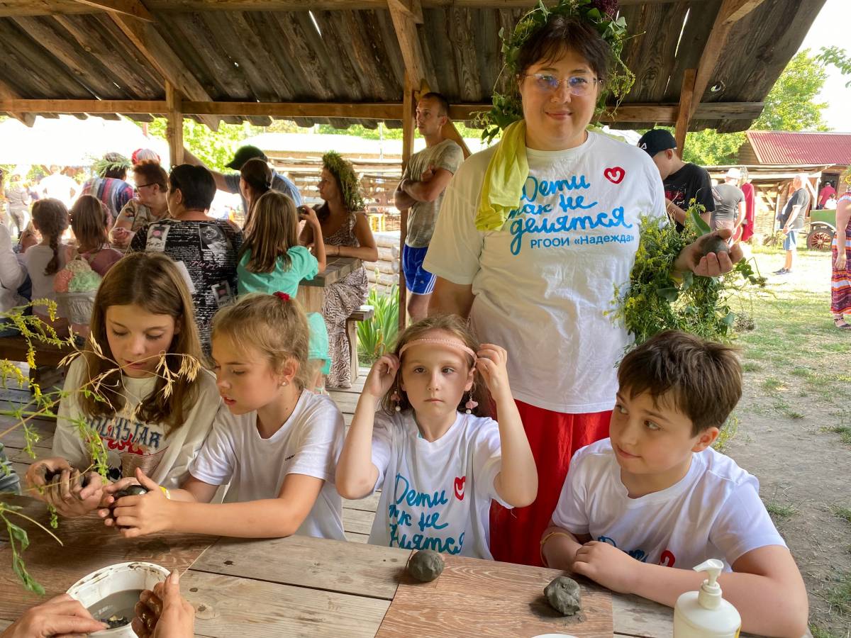 «Особенные» дети с удовольствием участвовали в празднике. Они учились плести венки, мастерить народную куклу, пробовали силы в кузне, водили хороводы, участвовали в народных обрядах и загадывали желания на каравае.