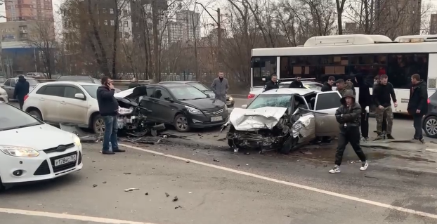 Массовое ДТП на улице Нансена в Ростове 25 ноября / Кадр Дон-ТР