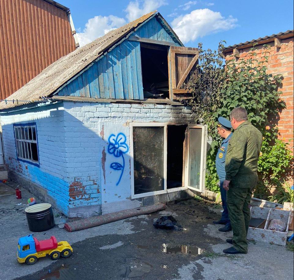 В одном из домовладений загорелась хозпостройка. В ней были дети.
