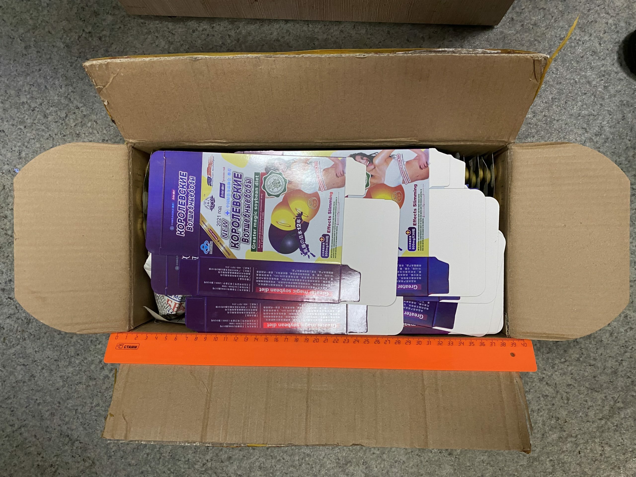 В посылке были обнаружены 80 блистеров со средством для похудения «New Королевские волшебные бобы», в которых находилось 720 капсул. Согласно заключению специалиста, данный препарат содержит в своем составе cибутрамин общей массой более 200 граммов. В отношении женщины возбуждено уголовное дело по ст. 226.1 УК РФ. Дело направлено в суд.
