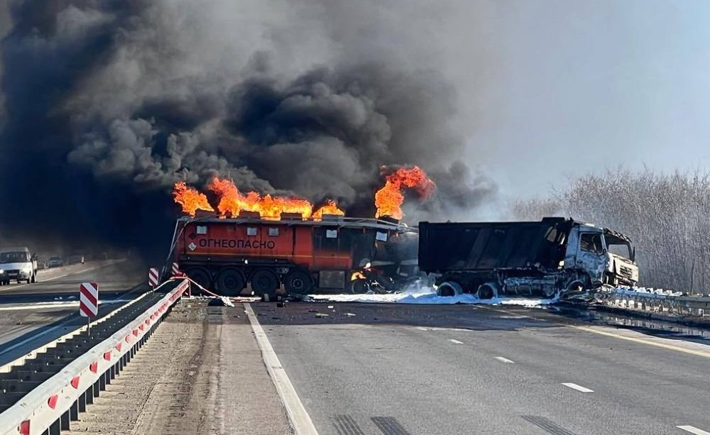 Вечером 21 марта на трассе М4 «Дон» произошло столкновение бензовоза и двух грузовых автомобилей.