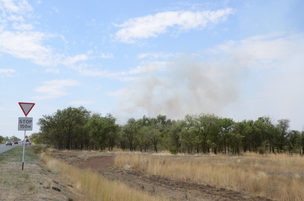 Большой пожар сейчас полыхает за околицей Ремонтного. Возгорание, как свидетельствуют очевидцы, началось с небольшого участка на въезде в Ремонтное, в месте, где главная дорога уходит вправо, а влево идет объездная на Валуевку и Заветное.