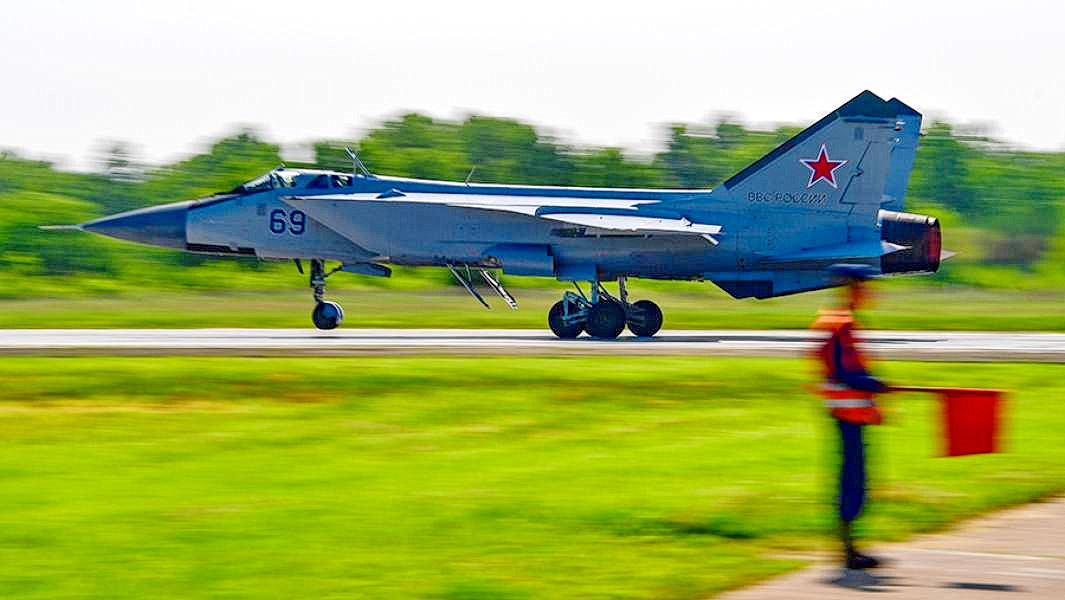 Двухместный сверхзвуковой всепогодный истребитель-перехватчик дальнего радиуса действия ВКС России МиГ-31БМ во время взлета Фото: ТАСС/Юрий Смитюк Источник: