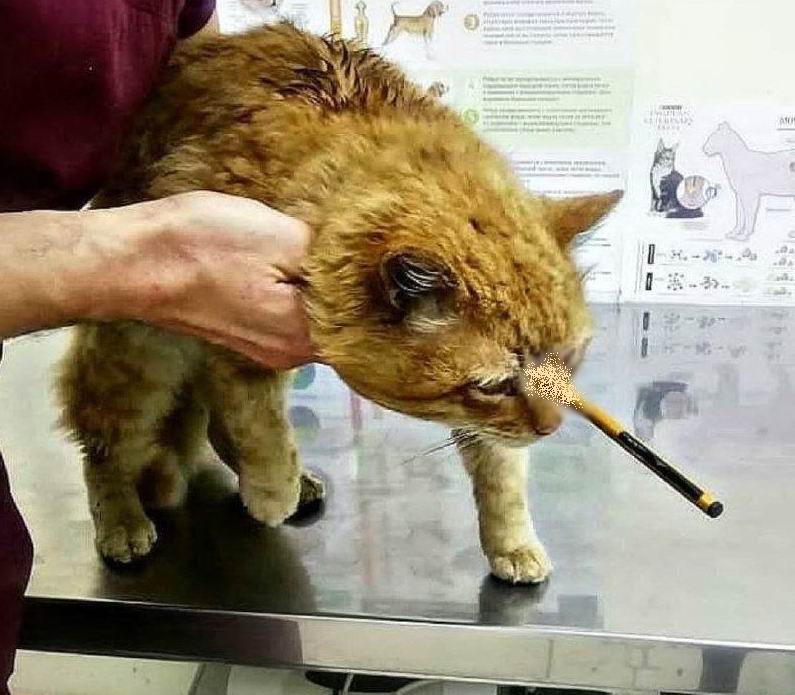 Операция по извлечению стрелы прошла успешно – котик идёт на поправку. Мозг не повреждён – его спасла фронтальная пазуха, куда стрела и угодила.