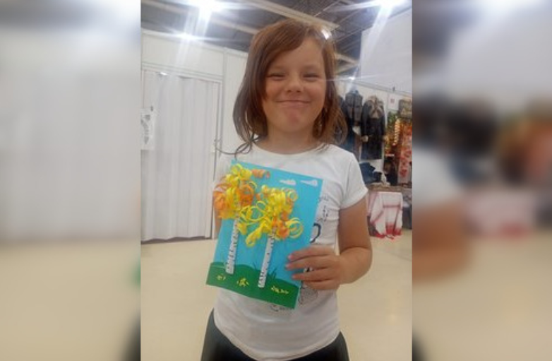 Рост Ангелины — 130 см, у нее худощавое телосложение, голубые глаза, каштановые волосы.