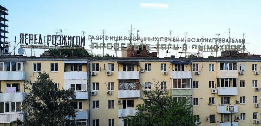 О том, что Ростов потерял ещё один артефакт советских времён, сообщили активисты "Моего Фасада". По их информации, управляйка из-за ветхости конструкции демонтировала вывеску "Перед розжигом газифицированных печей и водонагревателей проверьте тягу в дымоходе". Она много десятилетий украшала крышу пятиэтажки на площади Толстого.