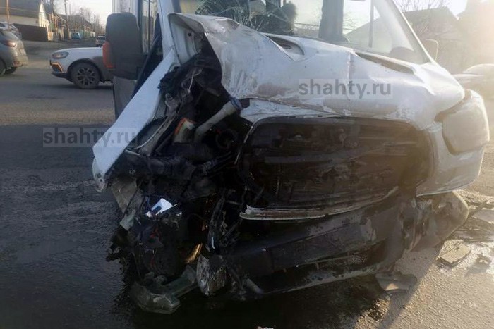 В минувший четверг, 9 марта, в Шахтах на перекрестке столкнулись фура и частный пассажирский микроавтобус.