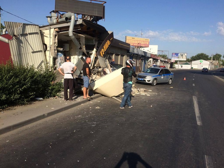 В донской столице водитель иномарки снес ларек с шаурмой и сбил пенсионерку.