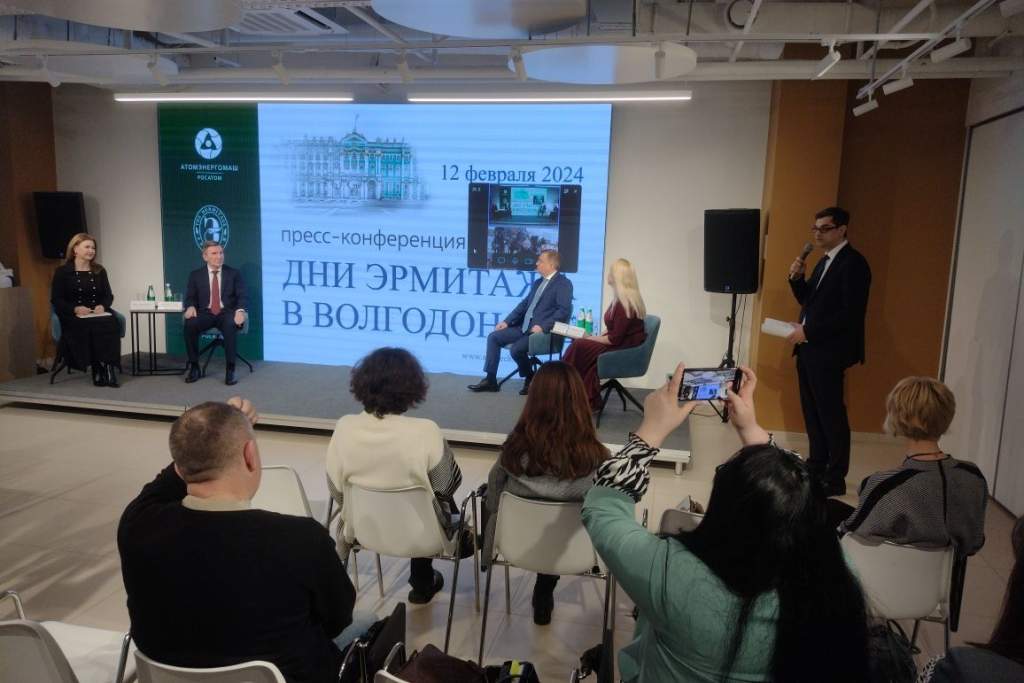 Сегодня, 12 февраля, в «Центре истинных ценностей» состоялась пресс-конференция «Дни Эрмитажа в Волгодонске». В ней приняли участие первый заместитель губернатора Ростовской области Игорь Гуськов, министр культуры Ростовской области Анна Дмитриева, заместитель генерального директора по управлению персоналом «Атомэнергомаш» Юлия Николаева, директор завода «Атоммаш» Максим Жидков, а также в онлайн-формате – заведующий сектором оружия отдела «Арсенал» Эрмитажа Всеволод Образцов.