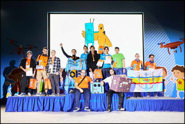 Дмитрий Стадник, Максим Калиберда и Ангелина Прыгунова стали победителями в категории «Собирание шайб». Их робот «Курьер» принес им путевку в финал престижного фестиваля.