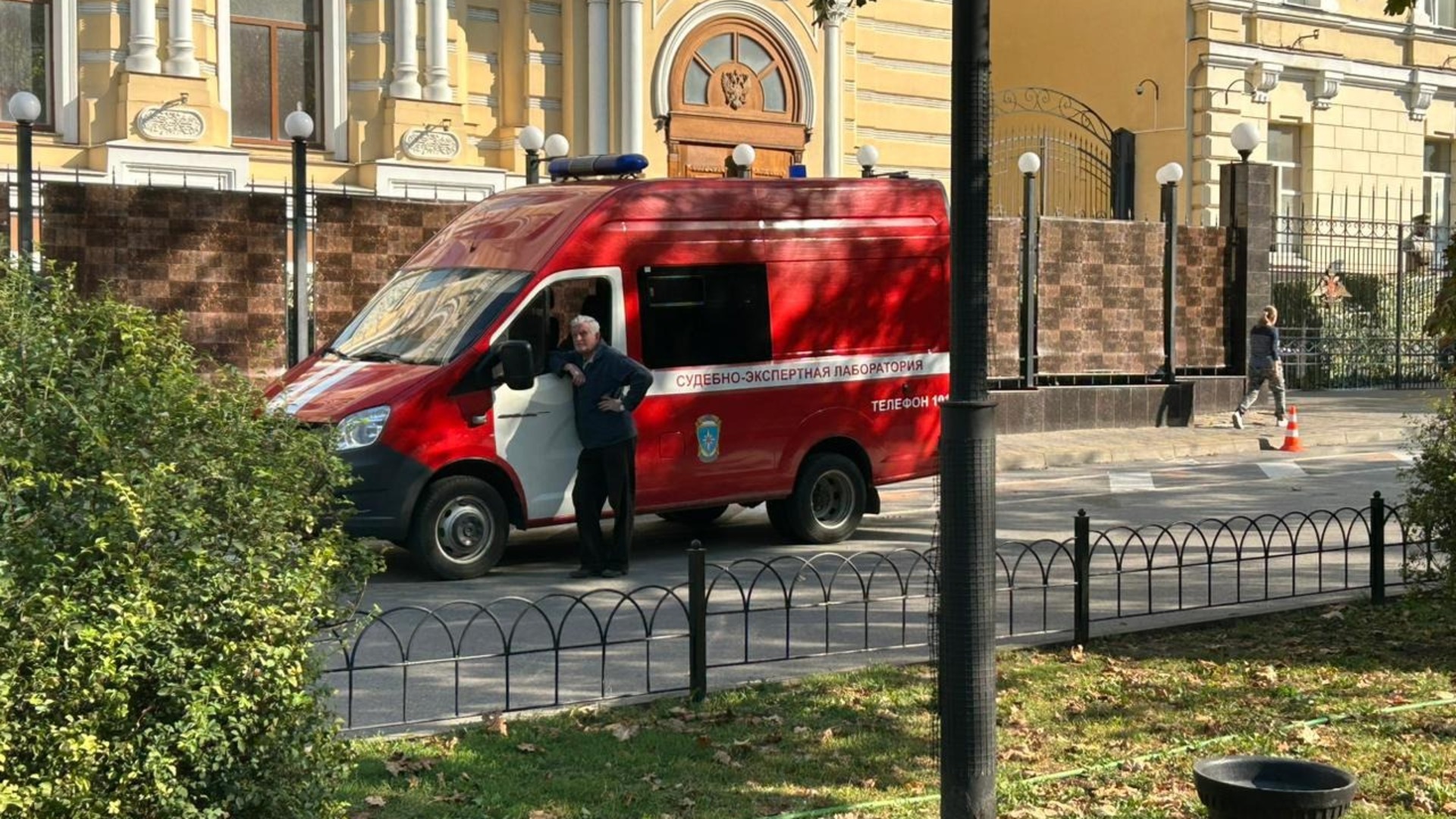 На месте продолжают дежурство полицейские и спасатели. Фото: rostovgazeta.ruГорожане не опасаются посещать центр города, они завтракают в местных ресторанах и фотографируют последствия падения БПЛА. На месте продолжают дежурство полицейские и спасатели.