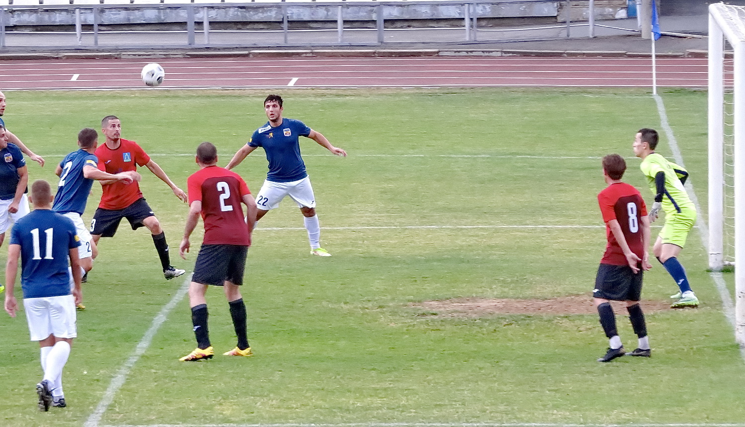 Первый тайм волгодонцы провели вяло и, пожалуй, некоторое преимущество на поле было у гостей. Но наш вратарь сыграл уверенно отразив несколько опасных ударов. А вот наши игроки «проверить» вратаря соперников не смогли – мячи летели мимо. Но на последней минуте первого тайма, после крика с трибуны: — Да начните же играть…Никита Белоус «распечатал» ворота соперников.