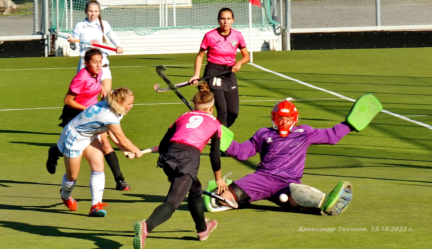 На стадионе «Спартак» продолжаются игры общего тура чемпионата России по хоккею на траве среди женских команд.