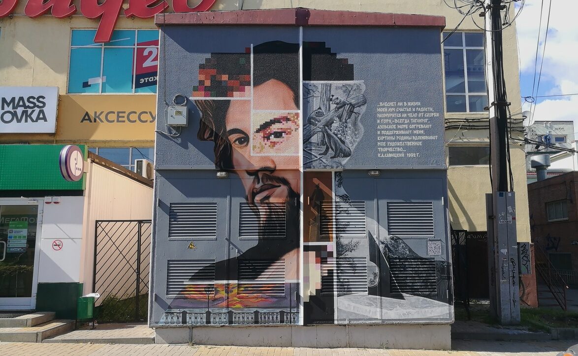 В рамках проекта «Окно в Таганрог: взгляни на город иначе!» стрит-художник Антон Тимченко нарисовал и подарил городу ещё одну картину – портрет знаменитого русского живописца Константина Савицкого. Новый арт-объект появился на здании подстанции по адресу: переулок Гоголевский, 2-2.