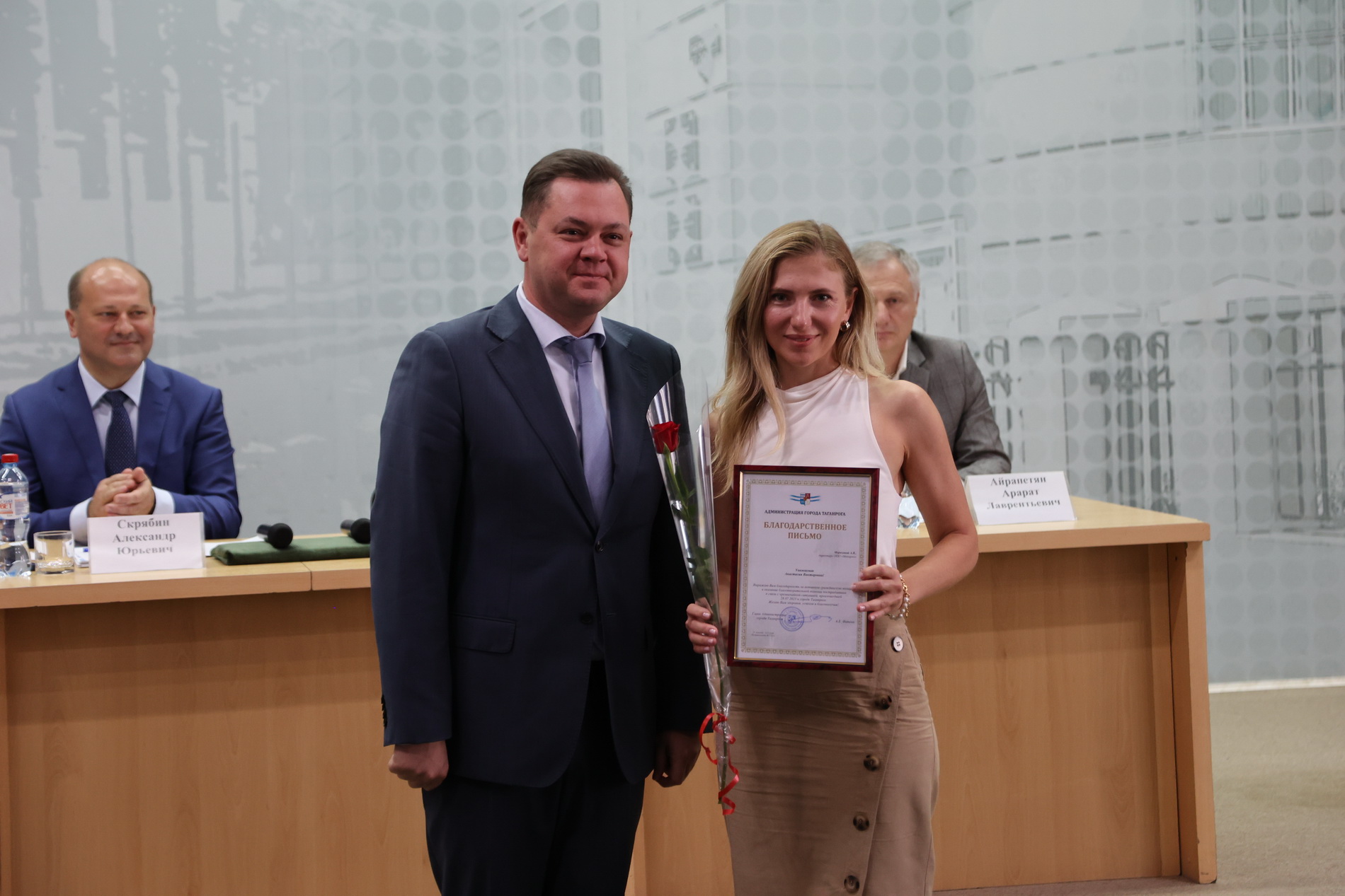 За активную гражданскую позицию и благотворительную помощь Благодарственными письмами администрации города были награждены: директор ООО «Лемакс» Анатолий Волхов, генеральный директор ООО «Полимерпром» Геннадий Бородин, директор ООО «ПК «КПИ» Артем Харитонов, генеральный директор ЗАО «ТДТ» Артур Аветисов, директор ООО «Макарон» Анастасия Морозова, директор ООО «Миртек» Яна Колесникова, генеральный директор АО «ПТМ» Роман Лабурцев, генеральный директор ООО «НФТ Энергомаш Инжиниринг» Леонид Путивлев и индивидуальный предприниматель Павел Лавров.