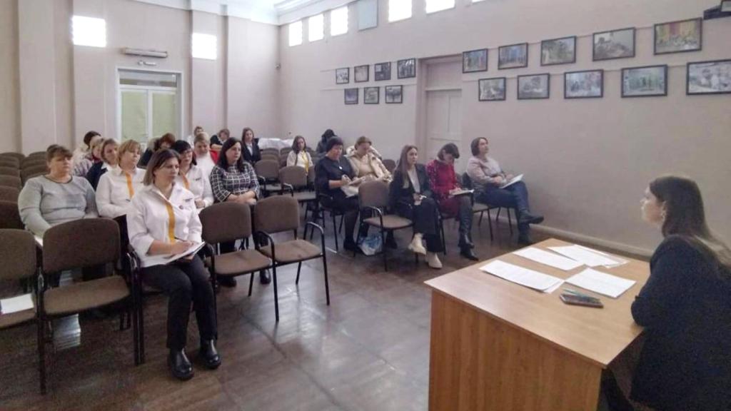 Заместитель начальника по организационно-воспитательной работе отдела образования Администрации Усть-Донецкого района Ольга Бестерженева подвела итоги воспитательной работы школ за 2023 год и познакомила работников образования с концепцией патриотического воспитания молодёжи в Ростовской области до 2030 года.