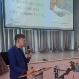 Алексей Кондрахин, директор МОБУ СОШ № 12 г. Таганрога, выступил с докладом «Ресурсный класс как форма организации специальных образовательных условий для обучающихся с РАС», поделился передовыми практиками и наработками учреждения, направленными на улучшение качества образования детей с ограниченными возможностями.