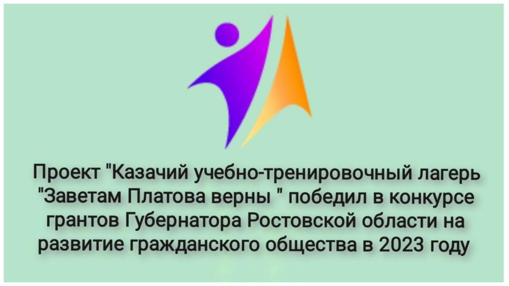 Проект "Казачий учебно-тренировочный лагерь "Заветам Платова верны" победил в конкурсе грантов Губернатора Ростовской области на развитие гражданского общества в 202