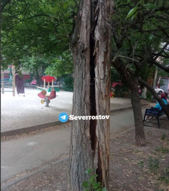 - Треснул ствол, оно вот вот завалится прям на оживлённую детскую площадку, где гуляют маленькие дети, ходят старики, ходят школьники. Видимо надо ждать пока случится беда, и кого-нибудь придавит, - пишет подписчица Telegram-канала «Северный Ростов» .