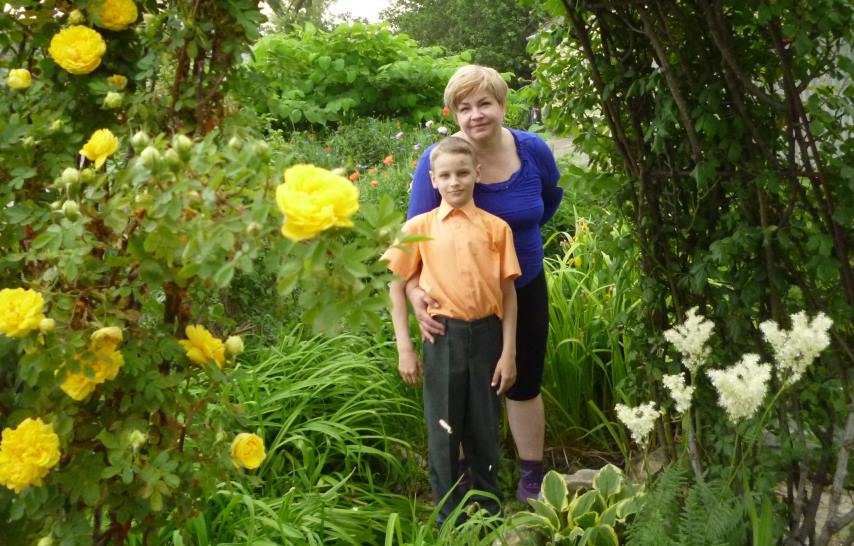 В очередной раз проезжая мимо прекрасного, полного цветов и зелени палисадника у дома № 103 по улице Ломакина, с радостью заметил хозяйку — она как раз трудилась в этом райском уголке. Мы познакомились и Альбина Чекаданова стала увлечённо рассказывать о том, какие цветы на её большой клумбе цветут, сменяя друг друга, в течение мая-июня, какие каскады и арки она создаёт из них.
