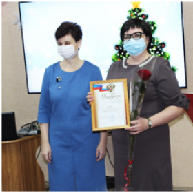 Ирина Валериевна тепло поприветствовала собравшихся, поздравила с наступающими новогодними праздниками и вручила благодарственные письма за высокие трудовые показатели и профессионализм специалистам УСЗН г. Таганрога и работникам Центра социального обслуживания.