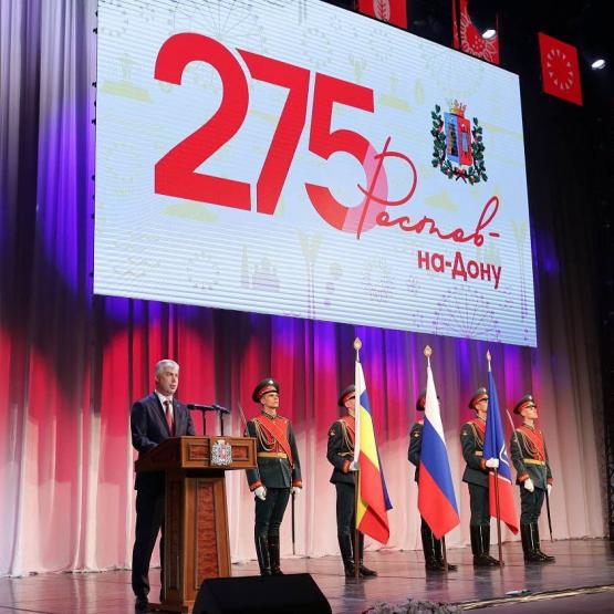 В Ростовском государственном музыкальном театре состоялось торжественное собрание, посвященное 275-й годовщине со дня основания Ростова-на-Дону. Участниками торжества стали Заместитель полномочного представителя Президента Российской Федерации в Южном федеральном округе, Герой Российской Федерации Анатолий Сафронов, первый заместитель Губернатора Ростовской области Игорь Гуськов, Председатель Законодательного Собрания Ростовской области Александр Ищенко, митрополит Ростовский и Новочеркасский Меркурий, глава Администрации города Ростова-на-Дону Алексей Логвиненко, а также представители разных поколений, разных профессий и сфер деятельности.