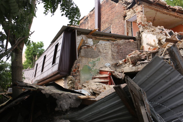 Стороны обсудили вопрос восстановления дома по адресу Социалистическая, 104, литер ББ1. Он был частично поврежден в минувшую пятницу, 10 июня, при сносе соседнего аварийного здания на Серафимовича, 103. Пострадали кровля и кирпичная кладка общей с демонтируемой постройкой стены.