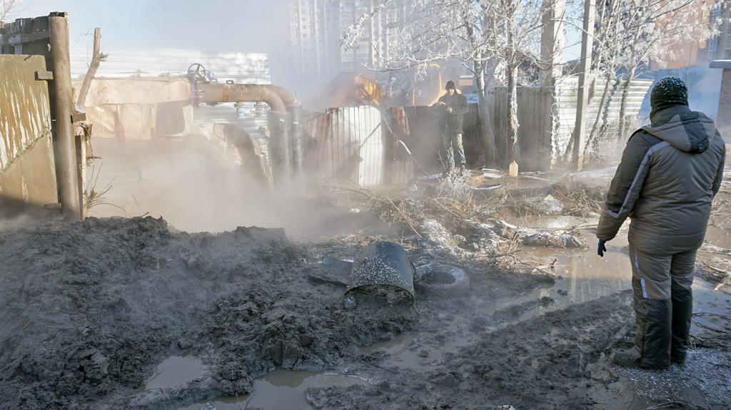 Сегодня, 9 января, в Таганроге специалисты коммунальных служб заняты ремонтом теплотрассы в районе переулка Каркасного.