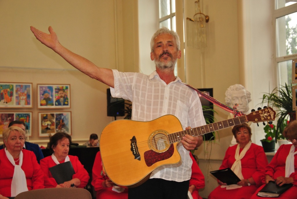 ГородВ концерте принял участие и «солнечный бард» из Шахтерска (ДНР) Александр Белашов – по приглашению руководителя хора Нонны Филипповны Помазкиной: они познакомились недавно, в мае, на Чеховском книжном фестивале.
