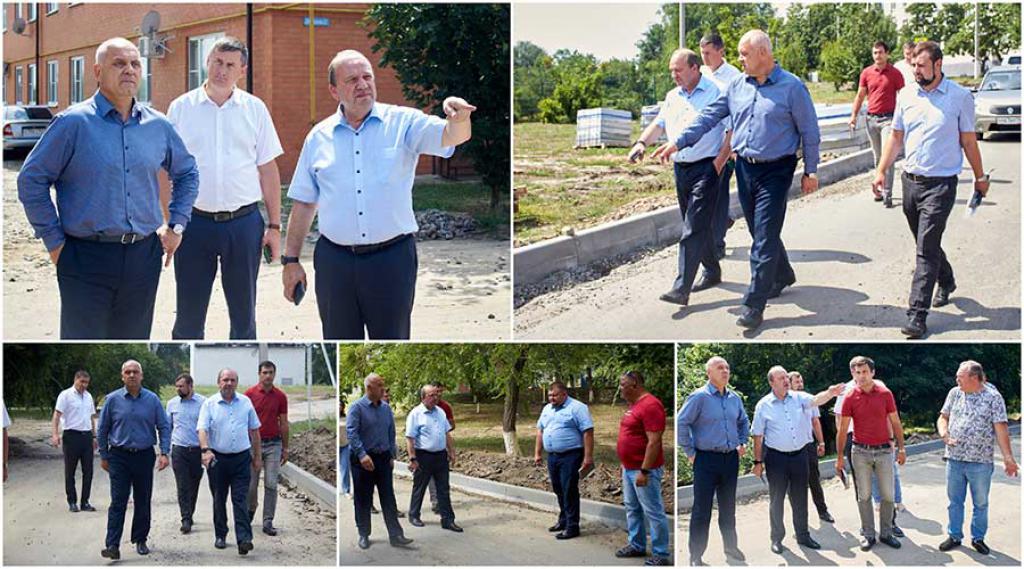 В поселке Усть-Донецком руководители побывали на улице Садовой и переулке Почтовом, где подрядчик только приступил к работам, после чего встретились с подрядчиком, который приступил к ремонту улицы Донецкой.