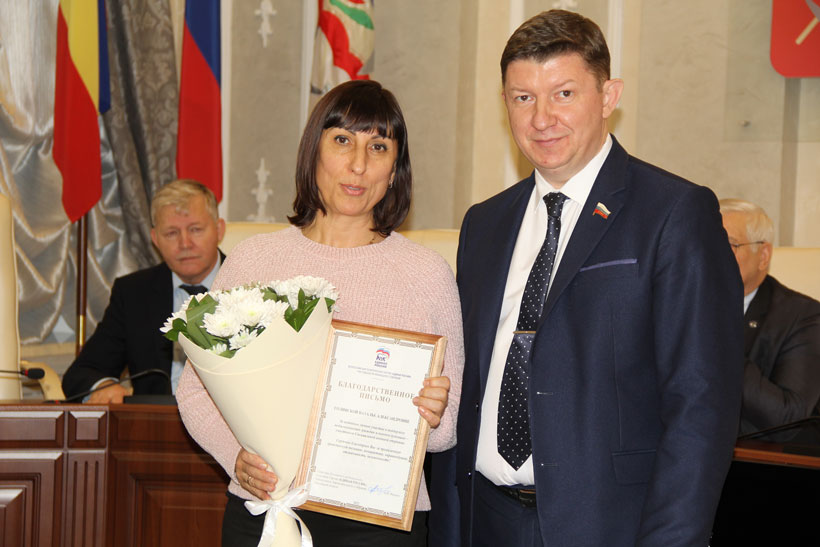 На заседании Фракции «Единая Россия» при Волгодонской городской Думе председатель Волгодонской городской Думы – глава города Сергей Ладанов вручил Благодарственные письма Секретаря регионального отделения Партии, председателя Законодательного Собрания РО Александра Ищенко двум депутатам – Наталье Голинской и Андрею Парыгину.