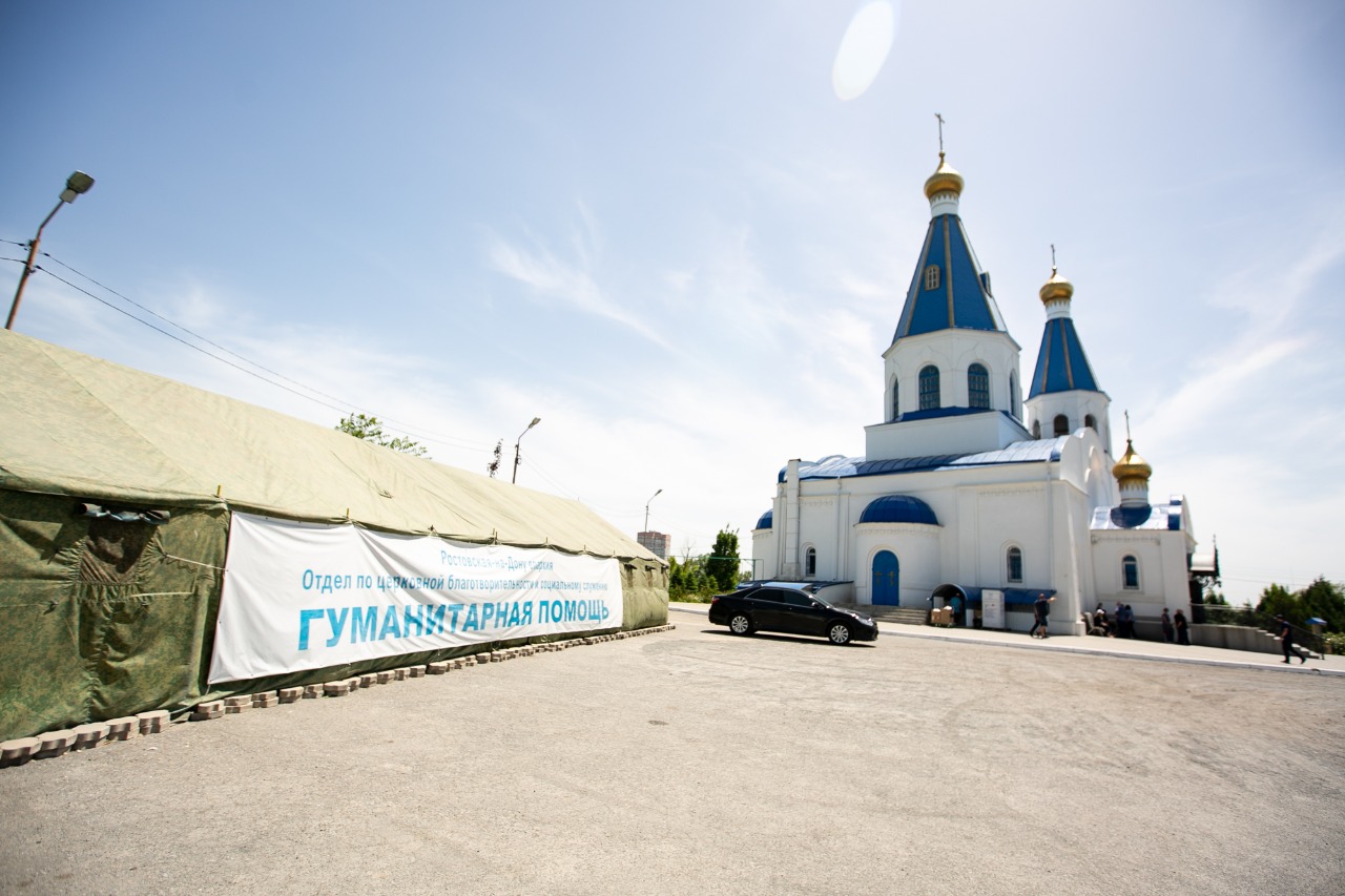 С марта в гуманитарный центр Ростовской епархии поступило более 12000 обращений беженцев. Приходы храмов Владимирской, Московской, Пензенской епархий передали продукты и вещи в пункты сбора помощи беженцам. Монахи Киево-Печерской Лавры доставили продукты малоимущим семьям и людям с инвалидностью. Священники, волонтеры, сестры милосердия в России регулярно передают в пункты временного размещения (ПВР) продукты, бытовую химию, воду, одежду, обувь, канцелярские товары.
