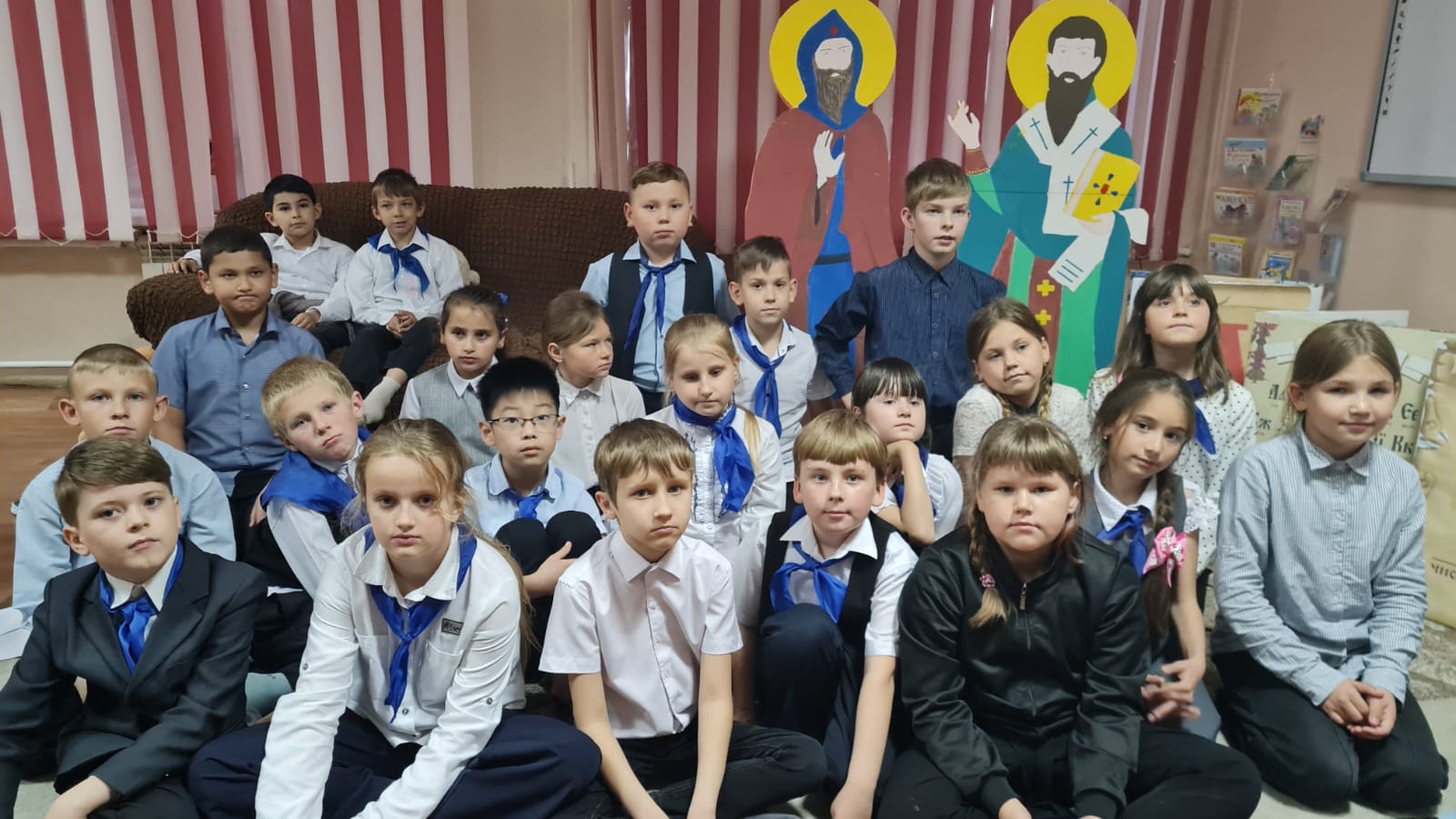 Далее шла речь о роли просветителей Кирилла и Мефодия в создании славянской азбуки. С большой заинтересованностью ребята смотрели интерактивную презентацию о святых равноапостольных братьях, наперебой отвечая на вопросы о их жизненном пути. Юные читатели познакомились и с азбукой-кириллицей, названной в память ее создателей. А потом каждый гость попробовал свои силы в написании слов на кириллице и чтении старославянского письма. На протяжении всего мероприятия дети активно вспоминали пословицы о книгах и бойко отгадывали загадки, которые бытовали еще в прошлом веке.