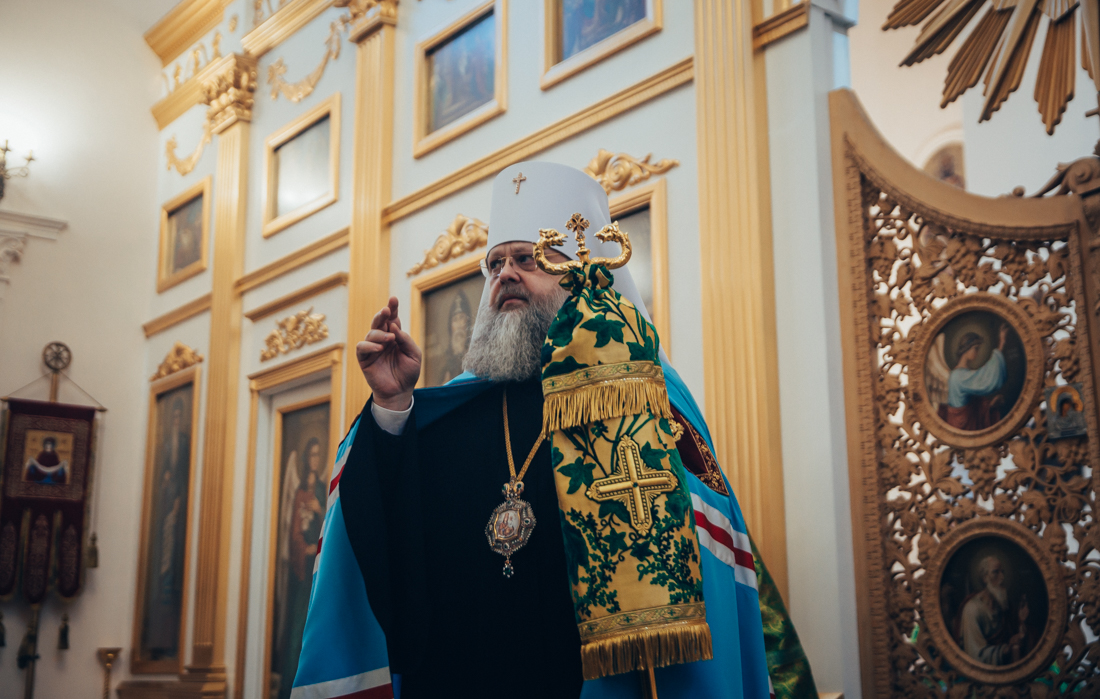 Его Высокопреосвященству сослужили настоятель храма иерей Владислав Паланчев, благочинный Северо-Западного округа протоиерей Константин Макаренко, руководитель Епархиального отдела по взаимодействию с Вооруженными Силами и правоохранительными учреждениями протоиерей Валерий Волощук, епархиальный древлехранитель иеромонах Маврикий (Звягинцев), клирики храма.