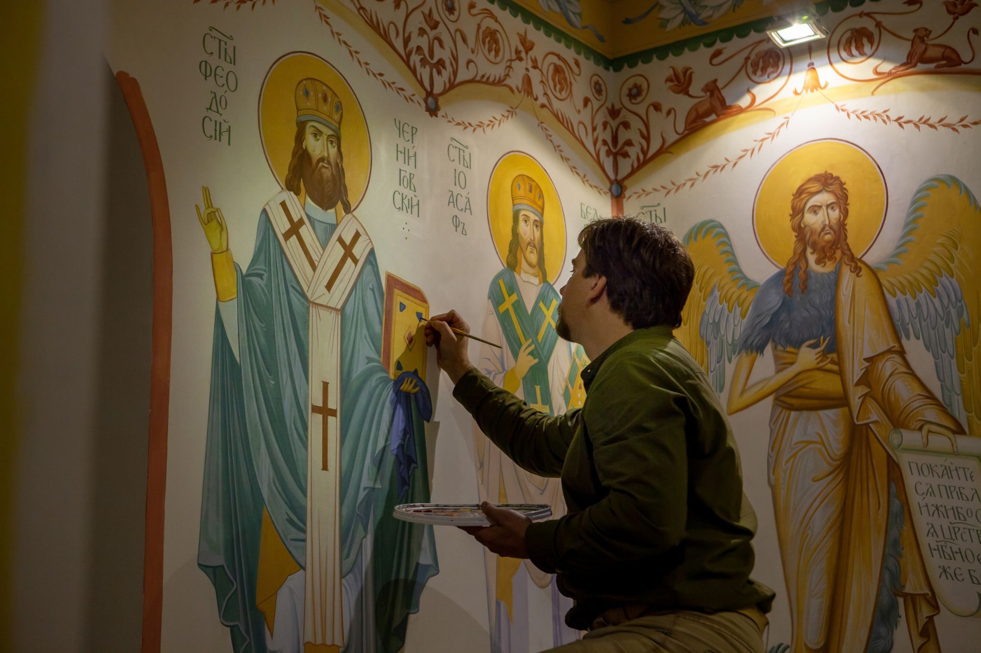 Роспись диаконника* в алтаре криптового храма Сорока мучеников Севастийских. Уже готов образ святого Иоанна Предтечи, в процессе образы святителей Феодосия Черниговского, Иоасафа Белгородского, Власия Севастийского.