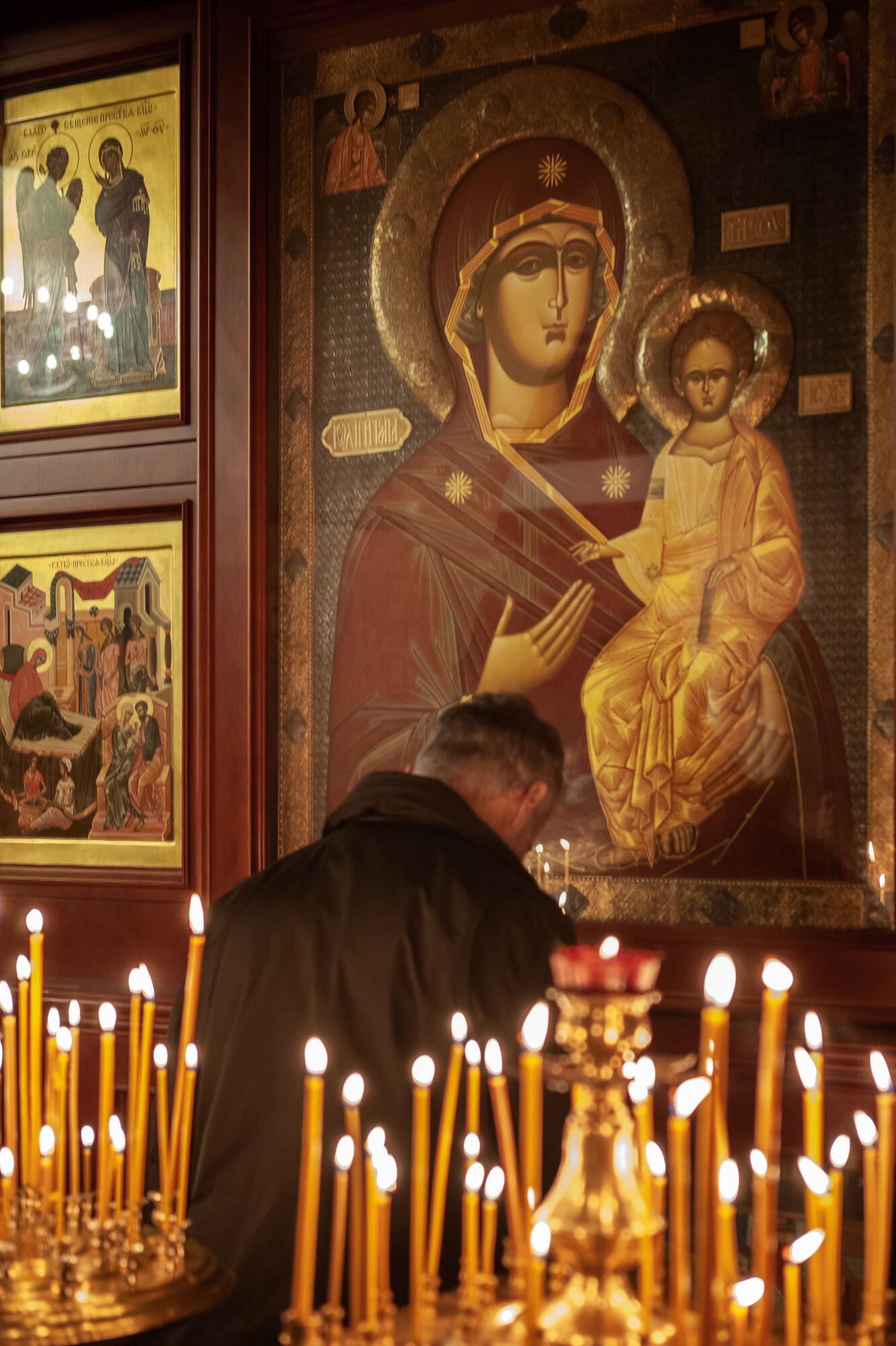 Ныне Дева предстоит в храме и с сонмами святых невидимо молится за нас Богу. Ангелы с архиереями поклоняются, апостолы же с пророками ликуют: ибо о нас молит Богородица Предвечного Бога.