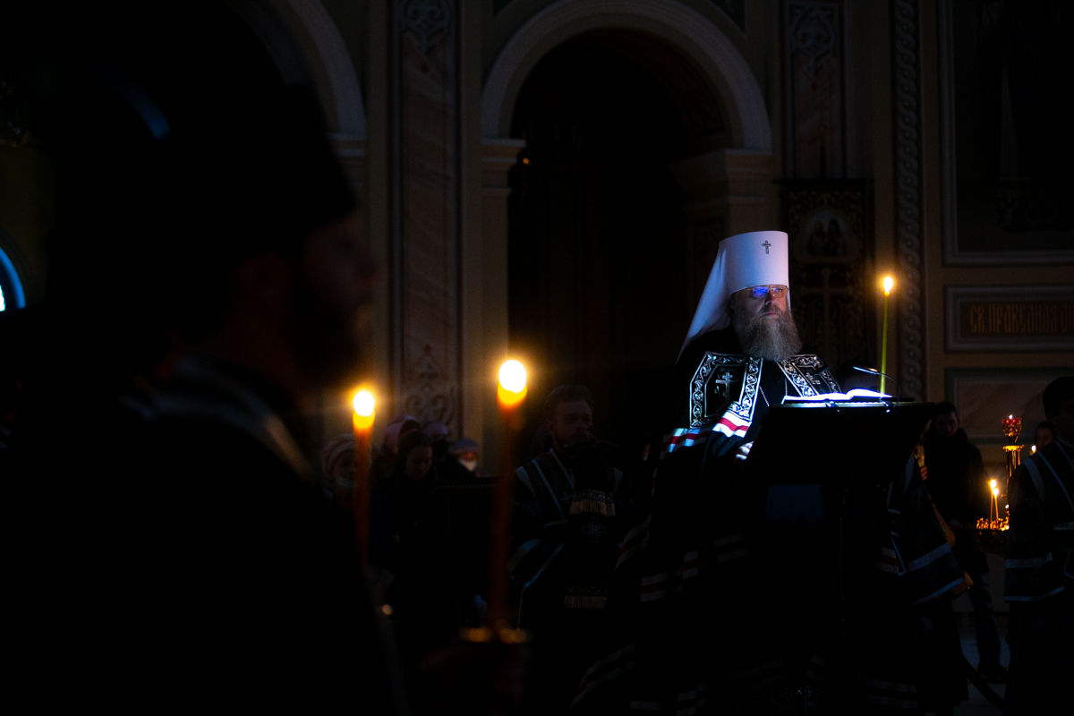В четверг первой седмицы Великого поста митрополит Меркурий совершил Великое повечерие с чтением покаянного канона преподобного Андрея Критского в Ростовском кафедральном соборе