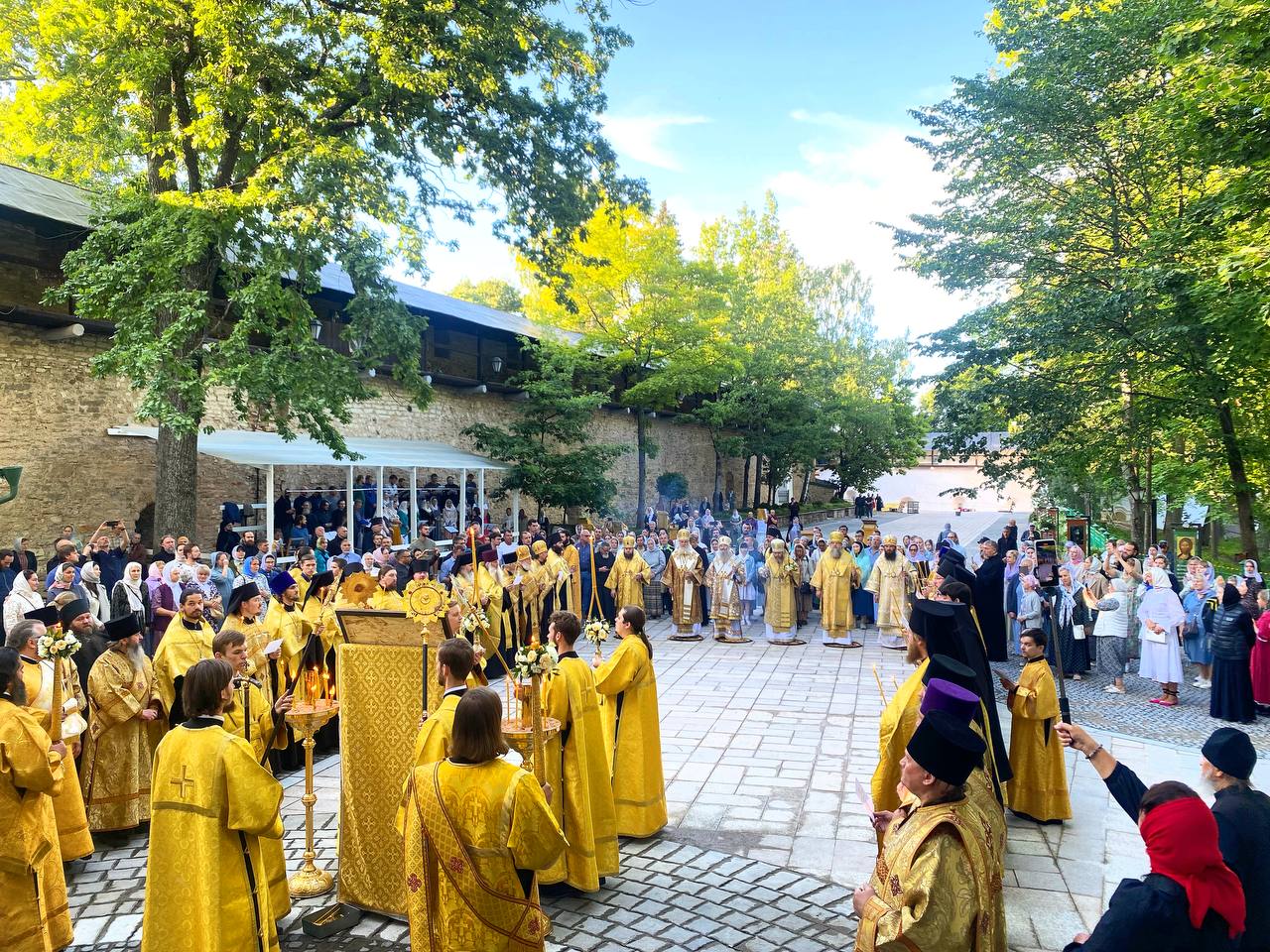 12 июля 2023 года, в канун дня памяти Собора святых двенадцати апостолов, в Михайловском соборе Свято-Успенского Псково-Печерского монастыря состоялось всенощное бдение, которое возглавил игумен обители,