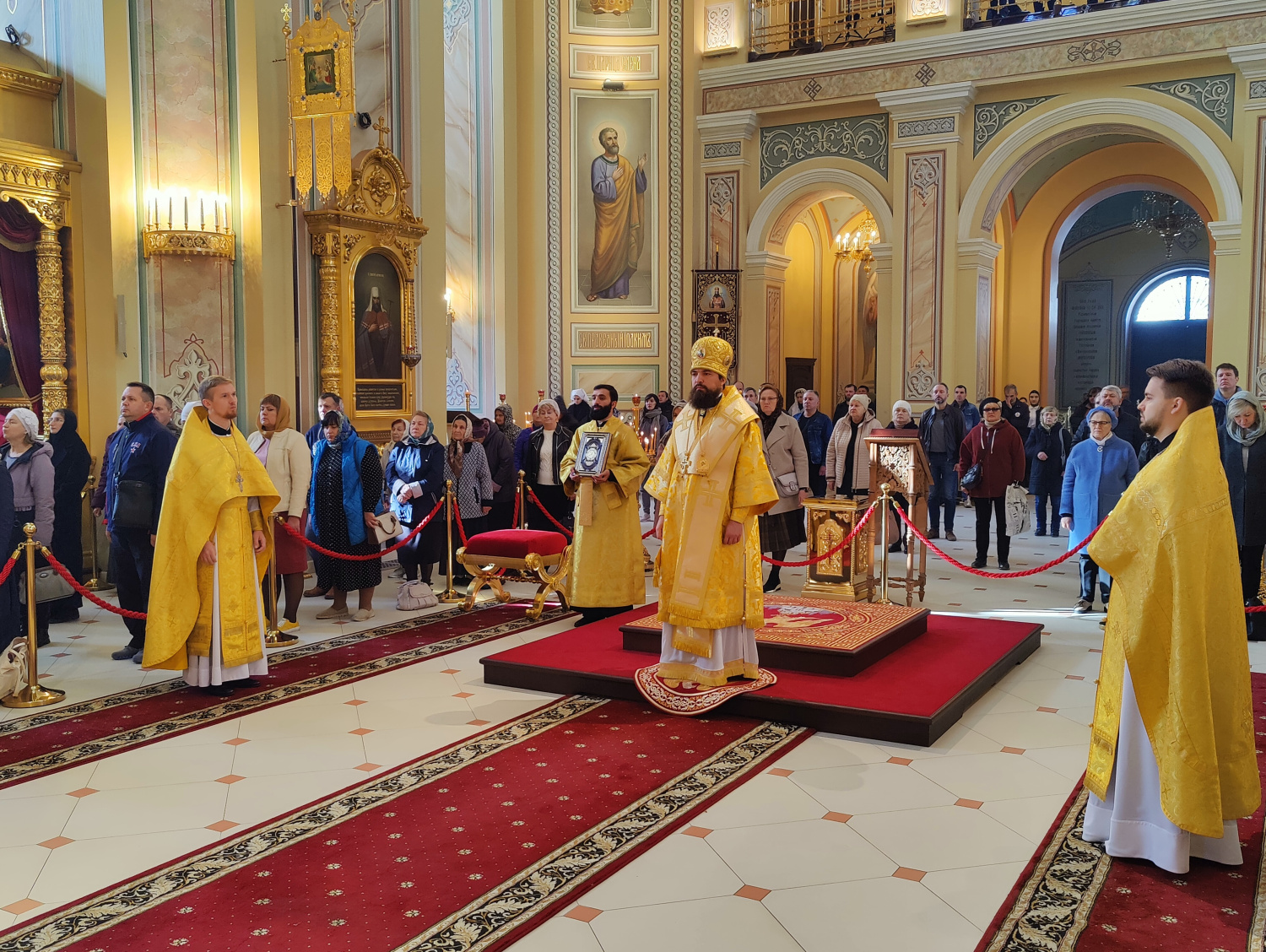 Его Преосвященству сослужили: настоятель собора иерей Леонтий Дмитриев и клирики собора. Диаконский чин возглавил диакон Сергий Осяк.