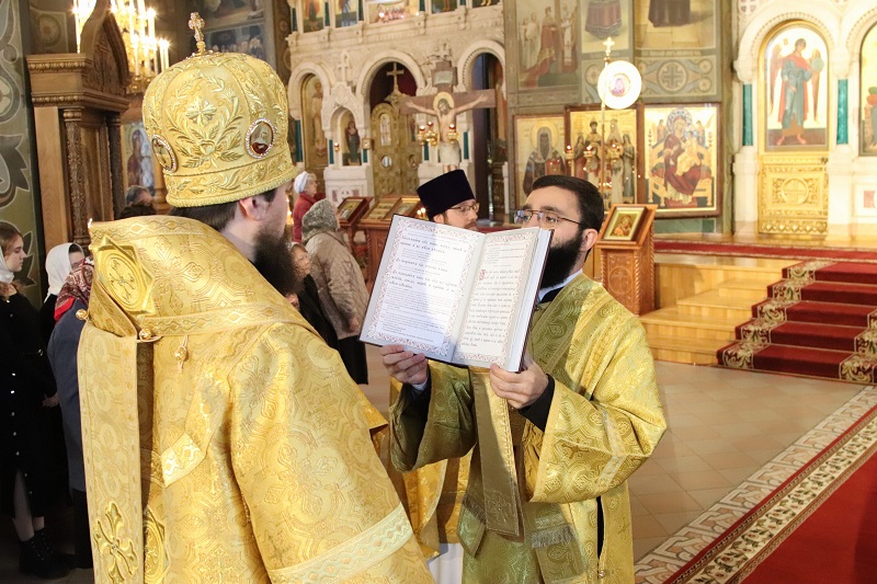 Его Преосвященству сослужили ректор Донской духовной семинарии протоиерей Тимофей Фетисов, настоятель храма иерей Алексий Осяк, проректор по учебной работе Донской духовной семинарии протоиерей Григорий Гриднев и клирики храма. Диаконский чин возглавил диакон Сергий Осяк.