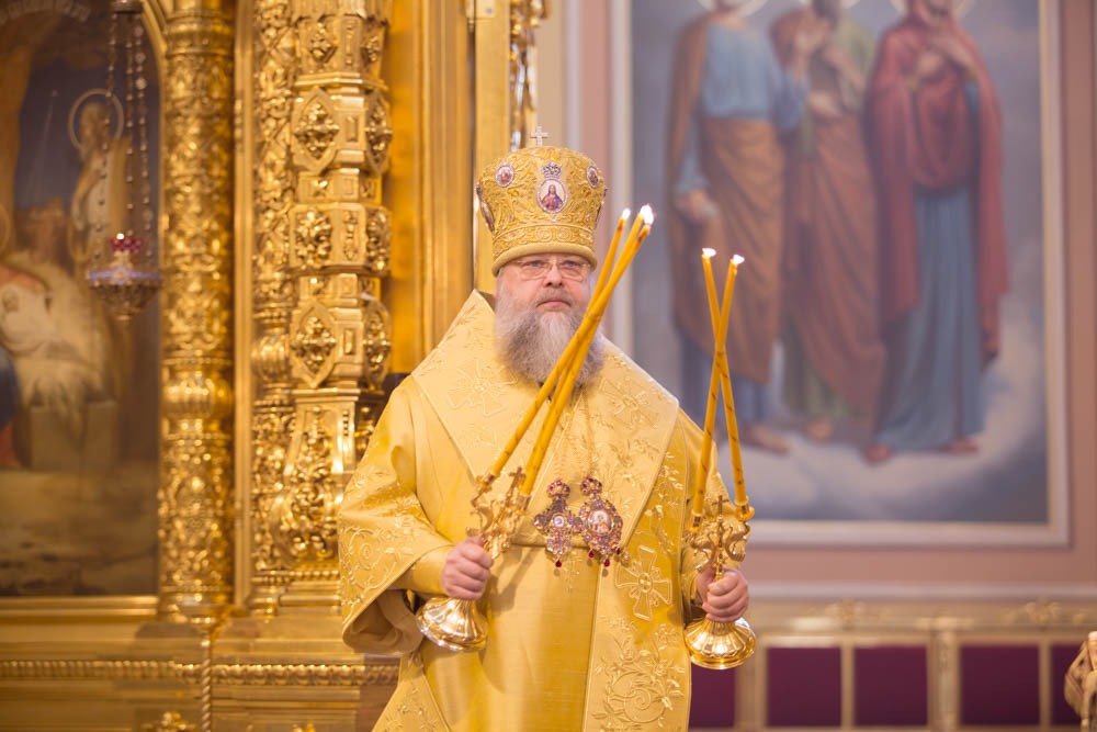 По окончании евангельского чтения владыка митрополит обратился к молящимся с архипастырским словом, в котором отметил: «Сегодняшнее слово является обличительным словом всем нам, православным христианам: не лицедействуйте. Многие могут возразить: в чем наше лицедейство заключается? Святитель Игнатий Брянчанинов, размышляя о лицемерии и лицедействе, говорит о том, что лицедеем является тот человек, который выдает себя не за того, кто он есть на самом деле: грешник выдает себя за праведника. Это лицедейство очень тонким бывает, оно касается и нашей молитвы, и внутреннего келейного правила.
