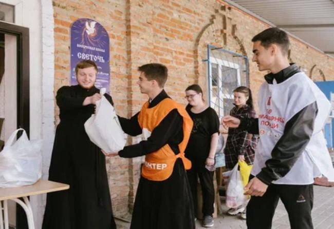 Эту непростую миссию выполняют 12 сестер милосердия и 30 молодых добровольцев, которые помогают в разгрузке фасовке и доставке помощи. Благодаря слаженной работе и помощи Синодального отдела по церковной благотворительности Русской Православной Церкви, фонда св. праведного Иоанна Кронштадтского, Ростовского отделения Всероссийского банка продовольствия «Русь», добровольческой организации #МЫ ВМЕСТЕ, фонда св. Екатерины из г. Екатеринбурга, Тимошевского благочиния и Свято-Духова монастыря, неравнодушных людей и организаций удается, выдавать продуктовые и гигиенические наборы нуждающимся.