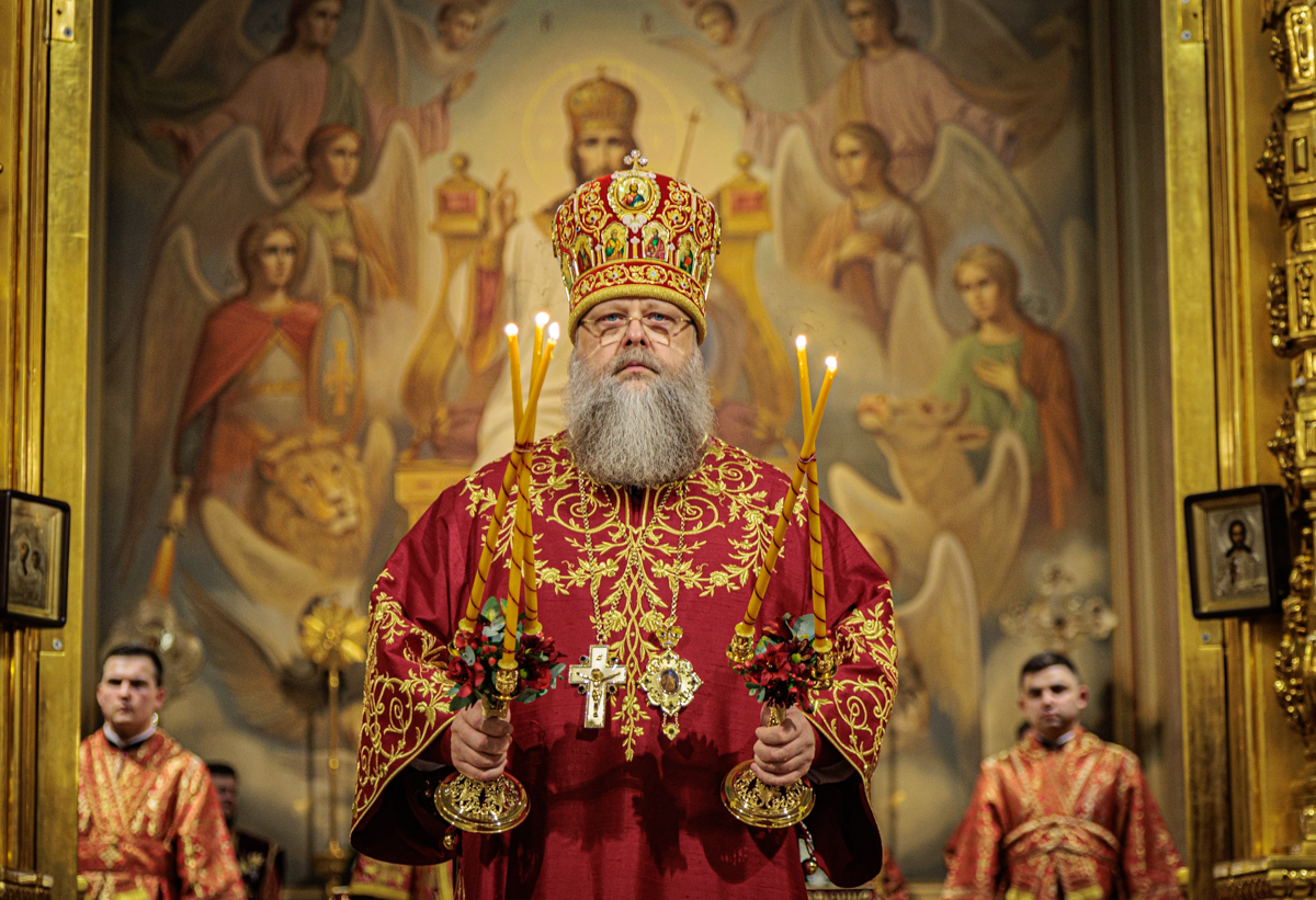 Его Высокопреосвященству сослужили викарий Ростовской епархии епископ Таганрогский Артемий, настоятель собора иерей Леонтий Дмитриев, духовник епархии протоиерей Николай Урывский, клирики собора.