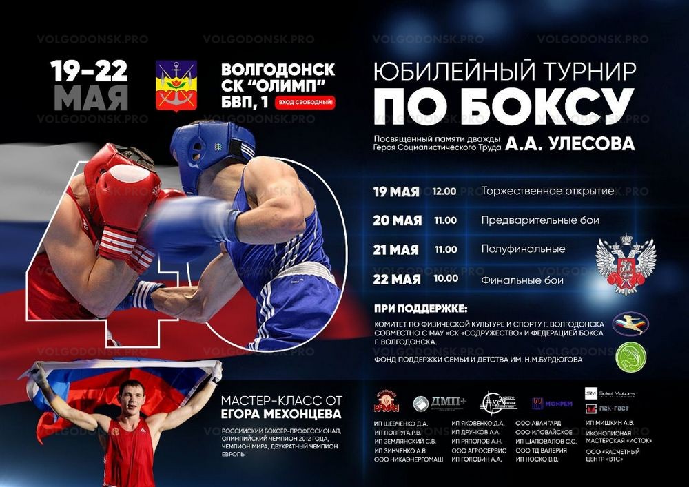 В Волгодонске, в спортивном комплексе «Олимп», с 19 по 22 мая пройдет 40-й юбилейный турнир по боксу, посвященный памяти дважды героя Социалистического труда Алексея Улесова.
