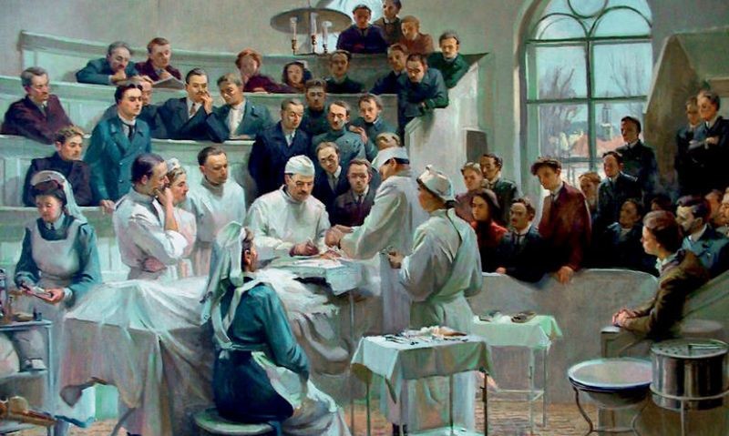 Николай Иванович Пирогов Вошел в историю как первый врач, применивший эфирный наркоз на поле сражения. Он сумел провести около сотни операций с эфирным наркозом во время полуторамесячной осады русской армией аула Салты. Также ему принадлежит идея накладывать гипс при переломах (до этого врачи использовали деревянный лубок). Он же является создателем первого в России атласа «Анатомические изображения наружного вида и положения органов, заключающихся в трёх главных полостях человеческого тела». Этот атлас стал незаменимым для всех хирургов и для последующего развития оперативной хирургии.
