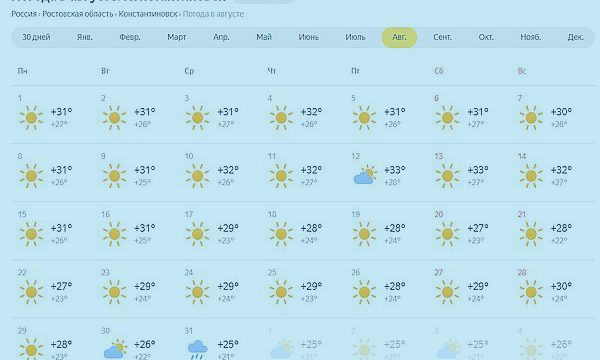 Какая погода ждет жителей Константиновска и области в августе
