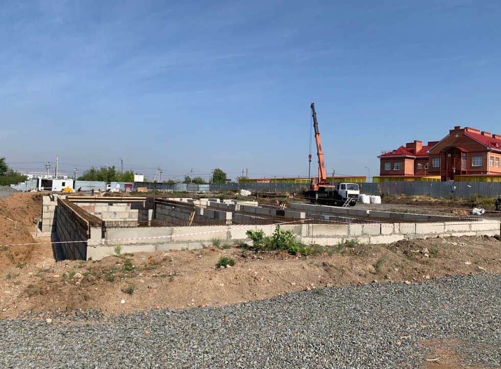 На сегодняшний день выполнены работы по разработке котлована, залита фундаментная плита, осуществляется укладка блоков. Вся территория стройки поделена на четыре зоны: зоны застройки, посетителей и автотранспорта, хозяйственная зона.