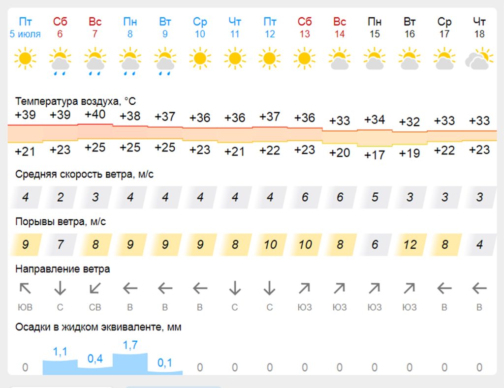 скриншот www.gismeteo.ruРанее ГУ МЧС России по Ростовской области объявило штормовое предупреждение о сильной жаре. Так, по данным Росгидромета, во второй половине дня 6 июля по южной и восточной половине, 7 и 8 июля на территории Ростовской области ожидается сильная жара +40…+42 градуса. Спасатели рекомендуют избегать воздействия повышенной температуры, носить светлую воздухопроницаемую одежду и головные уборы, ходить не спеша и стараться чаще находиться в тени.