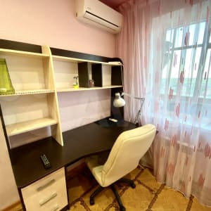 Однокомнатная квартира расположена в квартале в-9, есть два Раздельных спальных места 2+2 (два дивана), рабочее место с креслом, телевизор, встроенная кухня, балкон, санузел раздельный, современный кафель, есть вся необходимая техника, холодильник, стиральная машинка и посуда для приготовления пищи. Квартира очень светлая, и уютная.